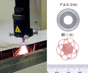 YAGレーザ加工機は,生産現場に広く普及している炭酸ガスレーザ加工機に比べて波長が短いため,集光性に優れており,従来のレーザ加工機では加工が困難だったアルミニウムや銅などの非鉄材料も精密に加工することができます。