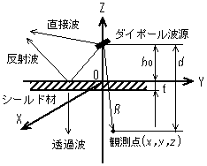 | (1) | 電気ダイポール波源を考慮したシールド効果を解析的に求めた。その結果,遠方領域においてシェルクノフの式とよく一致しており,本手法の妥当性が確認できた。 |