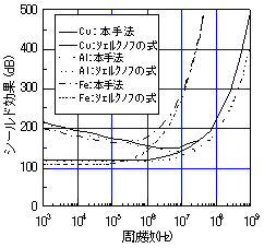 | (2) | 近傍領域におけるシールド効果は一意には決まらず,観測点位置により異なるという結果が得られた。従って,材料の特性としてシールド効果を表現する場合は,観測点位置を明示しなければならないことがわかった。 |