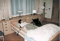 [1]ベッド:[共]動作能力に合わせて調整できる4モーター式ベッドを採用、[介]重度四肢麻痺者が和室、特殊トイレ、特殊浴室へ移動するための天井走行式リフトを設置、[介]ベッドや空調、照明、電話、テレビ、カーテン、窓、雨戸、玄関扉等を自立操作できる環境制御機器を整備(図2)