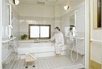 ・浴槽は,立位タイプの場合と同様に,姿勢を保持できる和洋折衷型を選ぶ。 ・シャワーチェアーは,姿勢保持ができる座角度調節付きのものを選び,臀部筋肉が減退しているため,シートはソフトな素材が要求される。 | |
