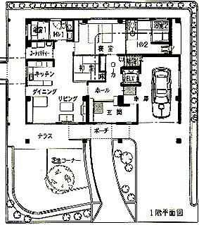 ・床面積:299.4m2(1階166.4m2,2階133.0m2)