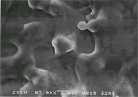 以上のようにPLAは,今後の応用拡大が期待されるが,克服しなければならない問題点もある。その中の一つに、薄膜を作製する際、図2に示すような膜上に液的状粒子が生成する問題がある。液的状粒子は,液状で空間を飛行し膜上で半球状に固化したものであると考えられており,膜の平滑性や結晶性を損なうため,その生成を抑制する必要がある。また,銅表面のクリーニングの場合には,図3に示すように過度なレーザ光照射では,銅表面の表面性状が大きく変化し,雰囲気ガスと反応するため「はんだ」がぬれなくなるという現象がある。