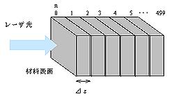 シミュレーションは,図4に示すように材料の表面から深さ方向に厚さ