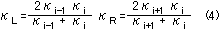ここで,κL,κRは要素の2つの境界での熱伝導率で温度の関数である(2.2.1参照)。それぞれ,