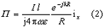 | ダイポール波源から放射された直接波のヘルツベクトルΠは式(2)に示されるような球面波となる。 | |