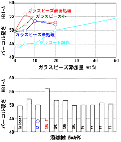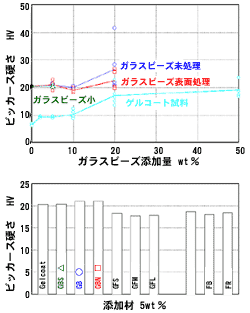 in hardness and the heat resistance. As a result, with the addition of the glass