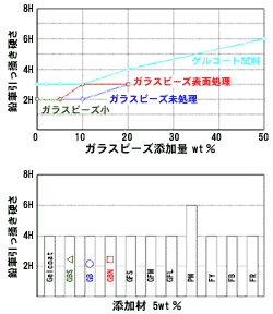hardness improved with the addition of the glass beads, however the pencil hardness